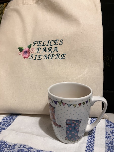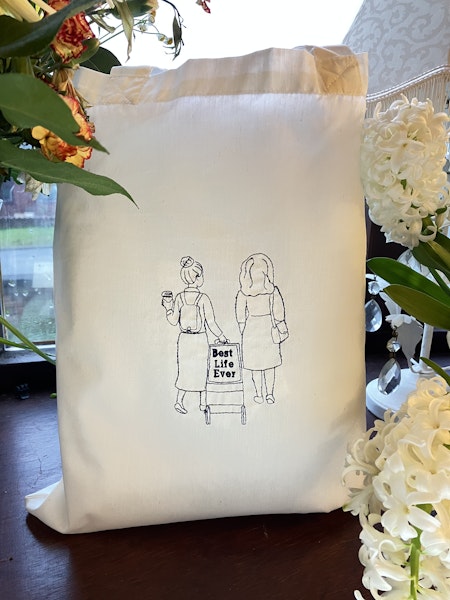 2 Tote bags, 2 aprons, 3 tea towels and 2 face cloths, custom embroidered with your request.